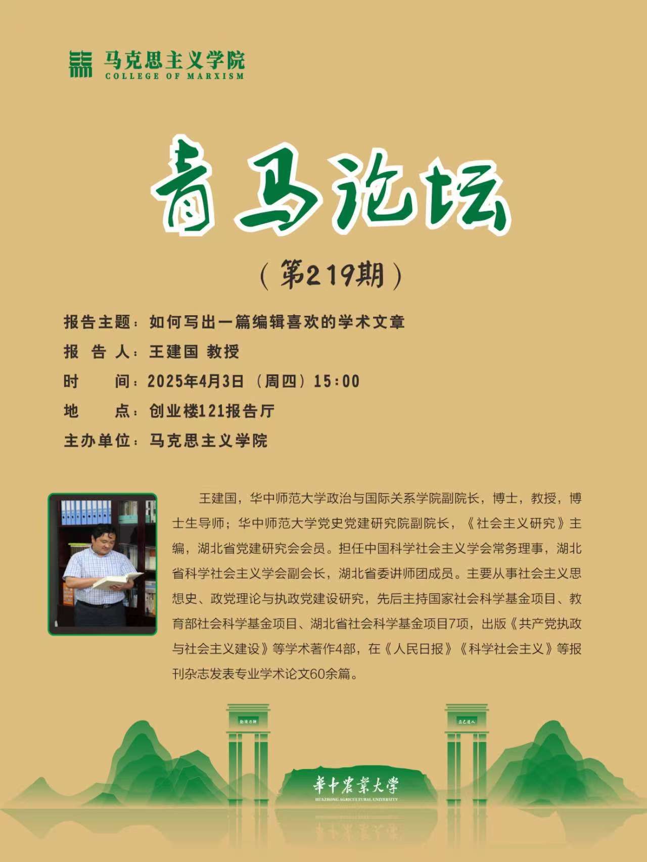 【活动预告】青马论坛第219期:如何写出一篇编辑喜欢的学术文章
