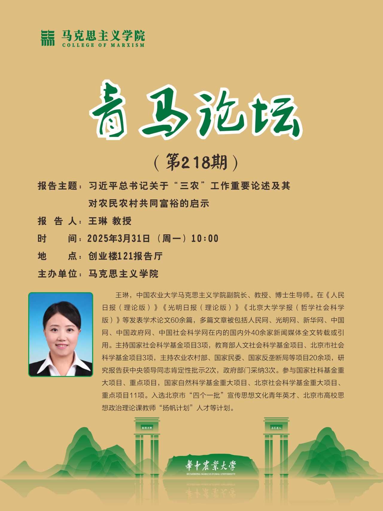 【活动预告】青马论坛第218期:习近平总书记关于“三农”工作重要论述及其对农民农村共同富裕的启示