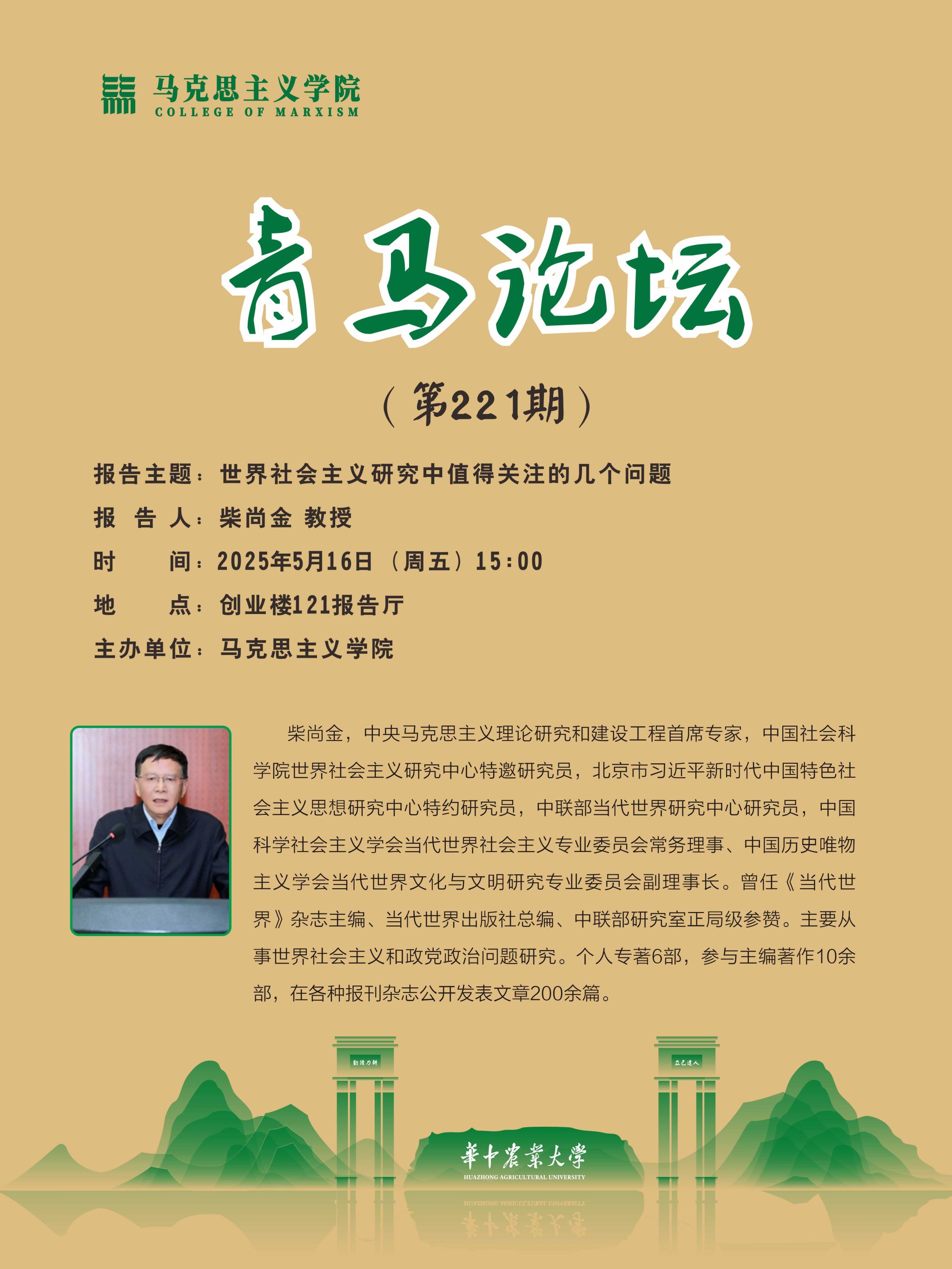 【活动预告】青马论坛第221期:世界社会主义研究中值得关注的几个问题